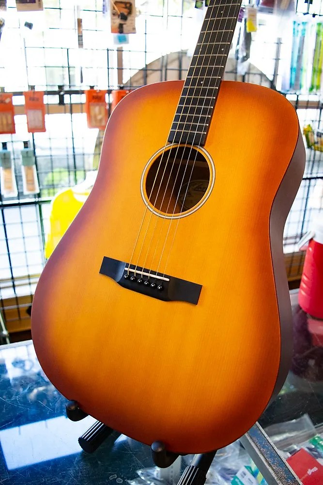 I opted to not get the electronics from the factory, as the large preamp interface would mean a hole in the side of the guitar, and I could find ways to amplify otherwise. I decided to splurge a little and get the extra sunburst finish. It was the most expensive option of the three, about $2,000, but I have no regrets. It took about 9 months for it to arrive as the factory had made it to order and shipping delays were happening.